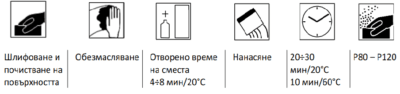 - - Епоксиден грунд: обезмаслете, шлайфане на сухо с Р180 – Р240 и обезмаслете отново