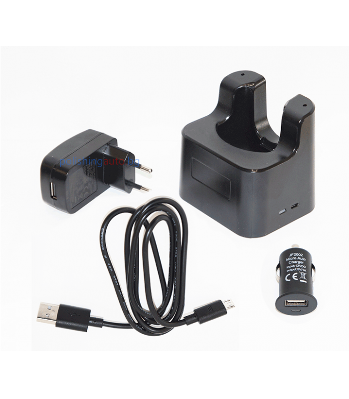В комплекта са включени зарядно устройство, Micro USB кабел за зареждане и преходник за автомобилна запалка, което прави фенера удобен за употреба както в сервиз, така и на път.