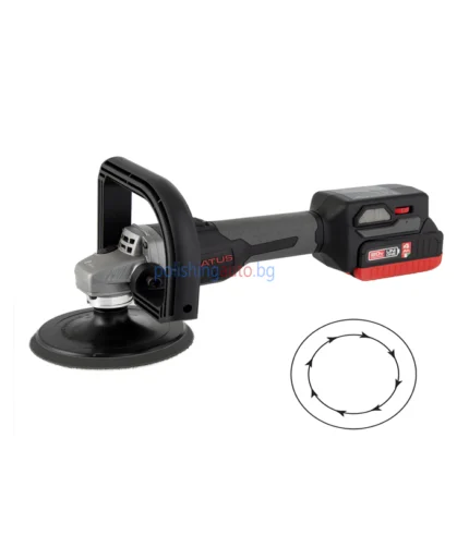 Безчеткова акумулаторна ротационна полирмашина STATUS PA150L с мощна 20 V литиево-йонна батерия, регулиране на оборотите и комплект аксесоари — готова за професионален и домашен авто детайлинг.