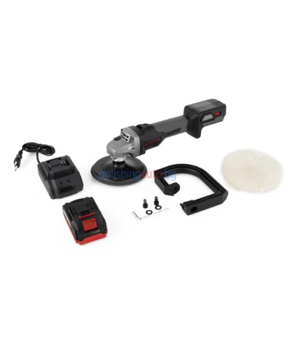 Безчеткова акумулаторна ротационна полирмашина STATUS PA150L с мощна 20 V литиево-йонна батерия, регулиране на оборотите и комплект аксесоари — готова за професионален и домашен авто детайлинг.