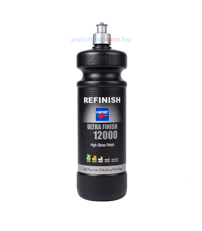 Благодарение на усъвършенстваната формула без силикони и пълнители, Ultra Finish 12000 осигурява реален и траен резултат, без прикриване на несъвършенствата. Работи отлично с орбитални и ротационни машини в комбинация с черни или меки полиращи гъби Cartec.