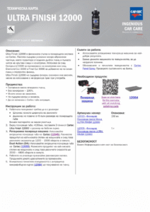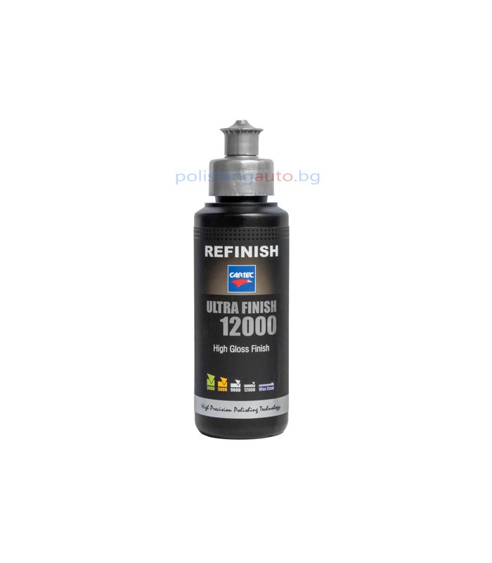 Cartec Ultra Finish 12000 е висококачествена паста за довършителна обработка, специално разработена за постигане на максимално гладка и блестяща повърхност след полиране. С нея се премахват фини дефекти, холограми и мъгляви участъци, които остават след корекция с по-агресивни пасти.