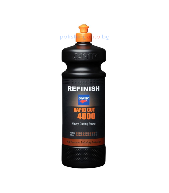 Продуктът е подходящ за възстановяване на стари, избледнели или захабени лакови покрития, като възвръща дълбочината на цвета и придава висок гланц. Работи отлично както с ротационни, така и с орбитални (DA) полиращи машини в комбинация със зелените полиращи гъби на Cartec. Rapid Cut 4000 не съдържа силикони и пълнители, което гарантира чист и траен резултат без прикриване на дефектите.
