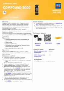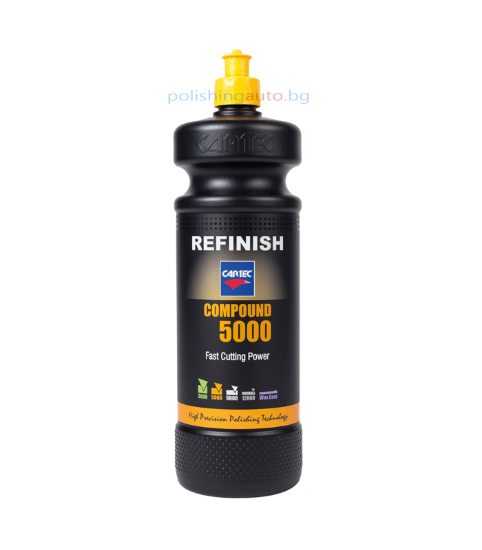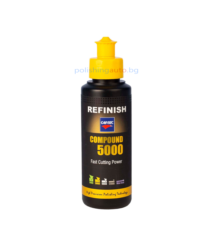 Cartec Compound 5000 е високоефективна полираща паста със средна абразивност, предназначена за възстановяване на замърсени, матирали или окислени автомобилни покрития. Благодарение на усъвършенстваната си формула, пастата бързо и лесно премахва сериозни дефекти като дълбоки драскотини (еквивалентни на P1500), стичания, „портокалова кора“ и overspray.