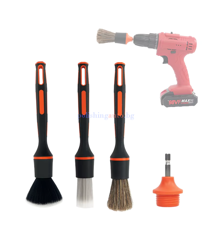 Детайлинг четки – комплект с преходник за винтоверт