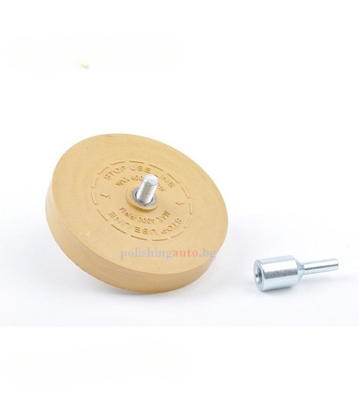 Резинов дебонд диск Eraser от Sunny Pads, създаден да премахва остатъци от лепило, стикери и фолиа без увреждане на боята, подходящ за използване с дрелка.