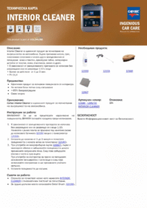 Cartec Interior Cleaner е професионален почистващ продукт, специално създаден за употреба в интериора на автомобила. Той бързо и ефективно отстранява замърсявания като мазнини, никотинови отлагания, петна от храна, следи от кожа и други упорити замърсявания, които се натрупват с времето.