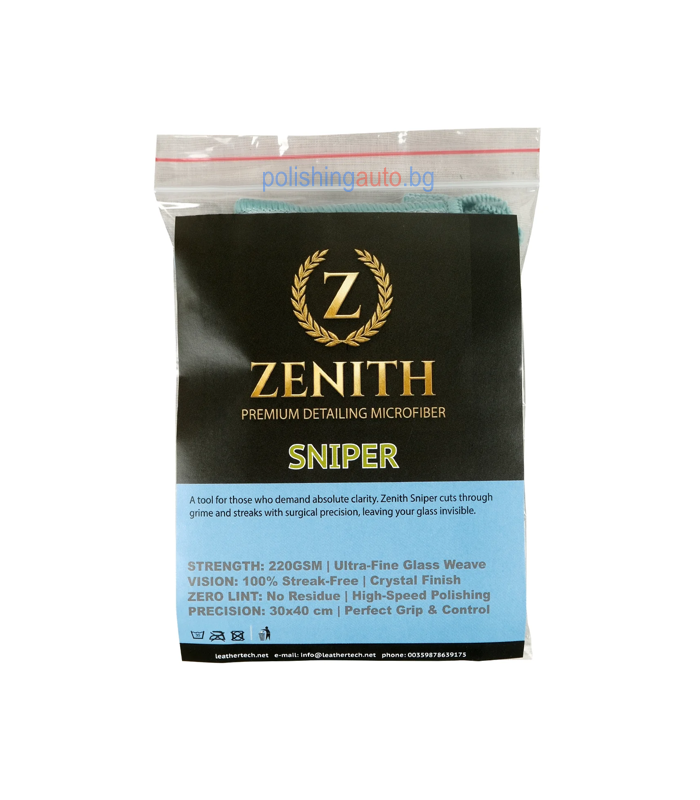 Sniper е специализирана микрофибърна кърпа за стъкла, създадена за чист и кристален резултат без размазване. Благодарение на фината структура и плътност 220 GSM, кърпата премахва замърсявания, отпечатъци и остатъци от препарати, без да оставя власинки или следи.