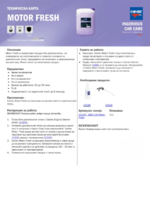 Cartec Motor Fresh представлява иновативен продукт, предназначен за декоративно обновяване на двигателя и прилежащите компоненти. Формулата е без разтворители, което осигурява безопасност за пластмаса и гума, като същевременно придава естествен, копринен блясък.
